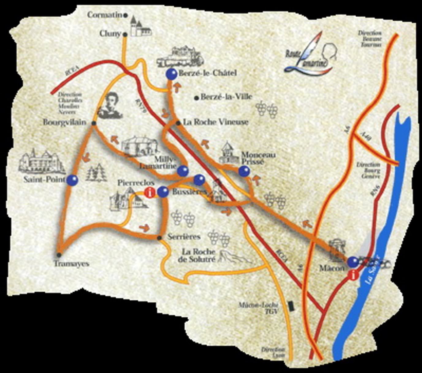 Itinéraire de 50kms (voir plan) dans le Val Lamartinien dédié à Alphonse de Lamartine illustre poète, écrivain et homme politique. Les points forts de cette route au départ de Mâcon (lieu de naissance de Lamartine) sont : le Château de Monceau à Prissé, le "Pavillon des Girondins", le Château de Berzé-le-Châtel, la Maison de Lamartine à Milly-Lamartine, le château Lamartine, le château de Pierreclos et enfin le musée Lamartine à Mâcon. Plus d'infos